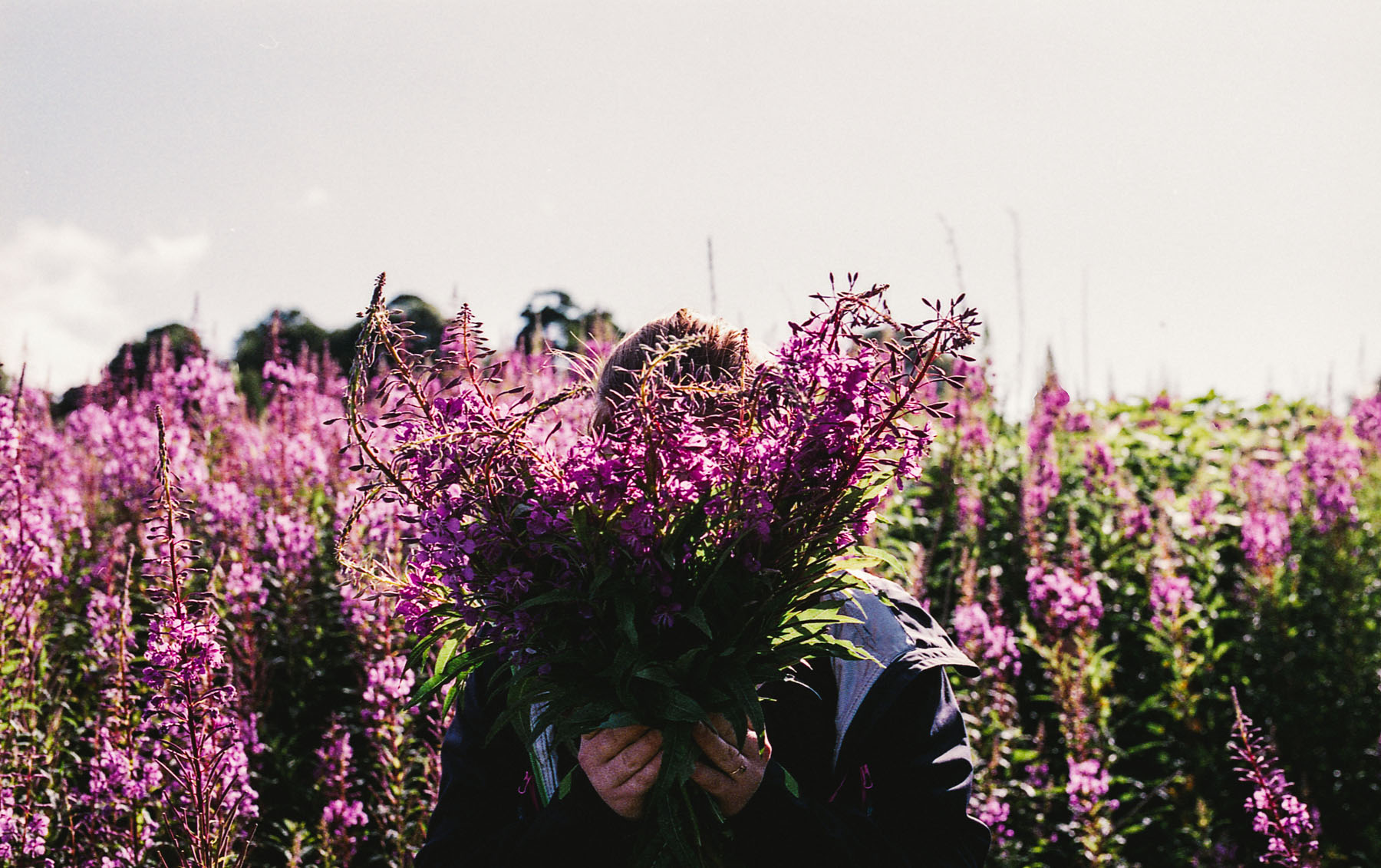 We picked our flowers as we tried to wade a way through the flower field. Some kind of tractor had previously cut its way through, but its tracks hadn’t quite levelled the plants it drove over. We carefully dodged the nettles, their stings and poison going right through the fabric of our jeans. We laugh and joke and then turn to find one of us missing. A head would bob up from the purple horizon, or stuck around a wall made of leaves and flower buds. We’d yelp loudly when getting stung, attempt to herd the dogs but they just went as they pleased and after we roamed around the flower forest, we realised there was only one way out – the way we came in. Behind a dry stone wall, crowned with barbwire, lay the path directly to the hill that would take us back to M’s. It was the easiest way back and by far the most adventurous. We hadn’t been there yet and we were keen on leaving as many new footprints as we could.